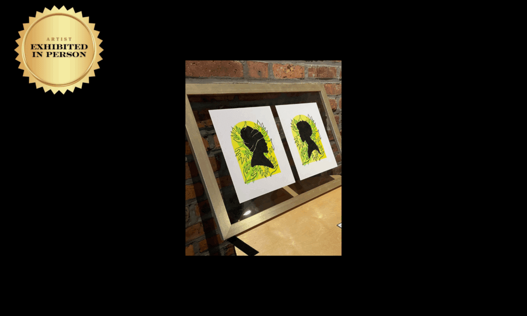 Ancestors Exalted: Children of Bresheh is a bold silhouette study rooted in reverence. The figures, carved with care, appear framed in spiritual foliage—guardians of lineage and light. Each mark serves as both tribute and invocation.