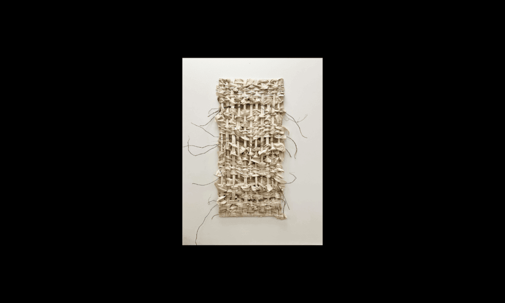 Branches Inselves is a handwoven wall piece made from reused bedsheets and botanical matter. Organic and unruly, it speaks to entanglement—of nature, time, and self—capturing quiet resilience in every knot and thread.